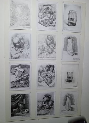 Lápices de dibujo: 9H, 8H, 7H, 6H, 5H, 4H, 3H, 2H, H, HB, M, F, B,2B, 3B, 4B, 5B, 6B, 7B, 8B