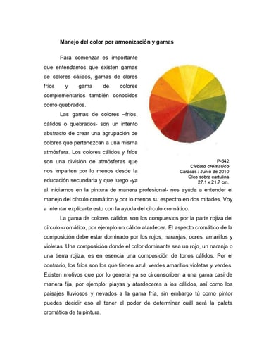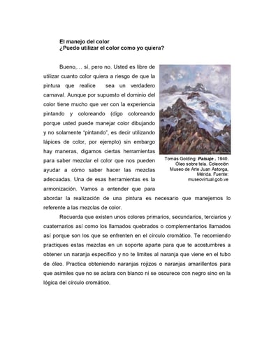 Desarrollar trabajos pictóricos orientados a profundizar los conocimientos del uso del color como medio de expresión, así como de las técnicas y elementos constitutivos de la pintura.